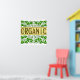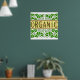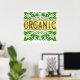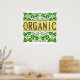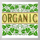 This go green saying reads Organic in green letters with vintage art of acorns and leaves, on a background of scrolling green leaves and vines.