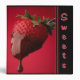 Gardez vos recettes "sucreries" organisées avec cet album de recettes pratique. La couverture de cet album a une photo contemporaine d'une fraise trempée dans le chocolat. Texte vertical: "Les bonbons". Le dos de ce classeur a une photo d'un délice de glace avec une cerise sur le dessus.