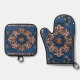 Oriental Blue Persian Turkish Carpet Pattern Oven Mitt & Pot Holder Set