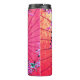 A pink and red parasol decorated with painted flowers and little blue birds. Seems to glow from within.