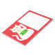 This awesome notepad features a graphic design image of a lucky oriental white waving cat. The cat has beautiful gold eyes and is wearing a gold medallion on the collar around its neck. The cat has pink ears and whiskers. This cute little kitty is holding a golden token with green jade inlay and a message in golden text that says "Good Luck".