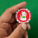 This awesome set of poker chips features a graphic design image of a lucky oriental white waving cat. The cat has beautiful gold eyes and is wearing a gold medallion on the collar around its neck. The cat has pink ears and whiskers. This cute little kitty is holding a golden token with green jade inlay and a message in golden text that says "Good Luck".