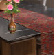 Oriental rug design in red and blue - an antique image is PRINTED on this item - illustration from an antique book- it was edited and applied on this table runner by Alma Wad . Nomadic tribal pattern from Asia minor .