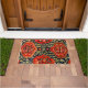 The design of an Oriental rug is printed on this large doormat, using an illustration from the 1922 published book "Oriental Rugs, Antique and Modern," edited and applied by Alma Wad. This specific design features an Oushak carpet, known for its deep blue central field, rich red medallions, and golden yellow leaves, reminiscent of carpets woven in Asia Minor during the XV and XVI Centuries. These vibrant colours are distinct from the more subdued hues typically found in Persian rugs.
