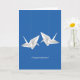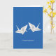 Sophisticated artwork of two folded paper or origami cranes against a blue background.