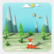 Origami Forest Scene with Fox Mountains and Birds Square Sticker