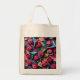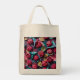 A stylish tote bag with an acrylic origami raspberry pattern for a playful and elegant look. Made using acrylic paint technique and inspired by splash art. Delicate raspberries are transformed into intricate origami shapes with a charming palette of pinks with splashes of blue and yellow.