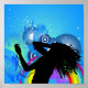 Silhouette dancer enjoying music art poster is an original of Asmaa murad of one8edegree Studios. The vibrant , electric , image of dancing girl has a cool and bright musical background with an electric feel to it . perfect for the wall of a music fan.