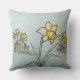 The small bunches of daffodils against a soft blue background of this painting on this unique throw pillow stands out as simple but with a story. The little image is titled "lonliness?" the head of the daffodil in the front of the picture hangs down while the bunches of daffs in the background are holding their heads high, so is the daffodil in the front simply alone and thoughtful? or are the daffs in the background self righteous and judgmentle? The color pencil and ink image is one of my original sketch paintings.