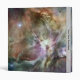 An absolutely stunning cosmological image of the Orion Nebula, a composite of images from the Hubble and Spitzer Space Telescopes, resulting in a space rainbow of gorgeous pastel colours.