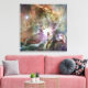An absolutely stunning cosmological image of the Orion Nebula, a composite of images from the Hubble and Spitzer Space Telescopes, resulting in a space rainbow of gorgeous pastel colours.