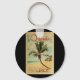 A uniquely retro mid-century modern Orlando Florida art print in vintage travel poster style. It features a curved palm tree on sandy beach with ocean under a blue cloudy sky.