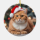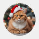 Cute Ginger British shorthair cat wearing a Santa hat.