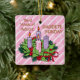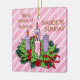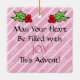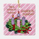 Our square pink ornament for the Third Week of Advent features an Advent wreath on the front atop a pattern of white diagonal stripes containing the word JOY. Joy is the theme of the week. A heartfelt sentiment appears on the back. + Front: The Advent wreath is made of evergreens and holly with two violet candles and a pink one being depicted as lit. Pink (or light rose) is the liturgical colour of joy for Gaudete Sunday. It signals a shift in mood from the solemn preparation of the first two weeks of Advent to the joyful anticipation of Christmas for the remaining two weeks. In actual practice, the remaining violet candle is lit the following Sunday and is pictured as such on the final ornament in this series. + Image Credits: Black and white Advent wreath AI-generated by mimicoloringdesigns via Pixabay, modified and colorized by Saints_Aplenty; bow by Elionas also via Pixabay. + Back: A wish for JOY that can be personalized.