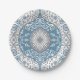 Decorative paper plates for the winter season, these are adorned with a large vintage inspired ornament surrounded by snowflakes, flurries, and swirls in blue and grey.