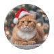 Cute Ginger British shorthair cat wearing a Santa hat.