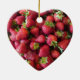Luscious, delicious, summer strawberries! Believe it or not, these fabulous fruits are actually a member of the Rosaceae or ROSE plant family. Unlike the flower, however, they are in the fragaria genus. Botanically, strawberries are not considered berries at all because the seeds are on the outside of the flesh; with each strawberry carrying an impressive (average) 200 seeds. There are lots of myths, legends and stories associated with the strawberry and its origins. One of the most common is that when Adonis died, Venus cried so much her tears fell to earth, turning into small, heart-shaped red berries . . . strawberries. Strawberries are thought to bring love and luck. However, one superstition about these glorious berries, maintains that eating too many strawberries when you are pregnant will result in strawberry birthmarks on the baby. Historically, however, strawberries were used by Native Americans in breads -- something that the settlers adopted that eventually evolved into what we now enjoy as Strawberry Shortcake. This favourite, summertime fruit is beautifully depicted in this photographic print on this gorgeous ornament. A wonderful, if unexpected, addition to your holiday tree, this delightful ornament is also a terrific decoration for gift packages and baskets . . . especially (of course) a basket full of scrumptious, summer strawberries.