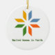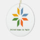 Hang this beautiful ornament in your home or present to a friend for a treasured keepsake. Showcases United Women in Faith's colourful logo and statement of love in action.