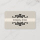 A stylish attractive business/profile card template decorated on the front with ornamental floral elements and a white centre band. Company Name on the front with name and contact details on the back placed within a wider white banded area. Customizable and suitable for may types of business.
