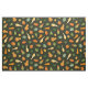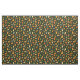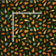 This fabric has small gourds in shades of green, yellow, and orange on a dark green background.