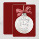 A simple bowed ornament headlines this bold minimalist holiday party invite.