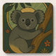 This vibrant wildlife art print features a stylized koala perched calmly at the heart of a radiant, mandala-like composition. Framed by a circular sunburst and surrounded by lush leaves, flowers, and geometric patterns in warm greens, oranges, and yellows, the koala’s expressive gaze and textured fur bring a sense of quiet strength and natural harmony.