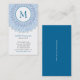 Call attention to a monogram by surrounding it with this intricate ornament in tones of blue and cyan. All the business information prints underneath with optional text printing on the reverse against blue. Suitable for many business types. Available in alternate colours with matching products.