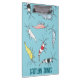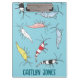 This colourful group of fancy ornamental shrimp is perfect for freshwater aquarium keepers who keep or breed shrimp in their fish tanks. The clipboard features hand-drawn blue bolts, cherry shrimp, yellow shrimp, red tiger, bumblebee and ghost shrimp.