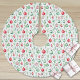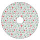 Add a festive and stylish touch to your holiday decor with this Christmas tree skirt featuring a striped pattern of elegant red and green Christmas ornaments, accented with watercolor evergreen greenery. Set against a white background, the design brings a fresh and cheerful vibe to the base of your tree.