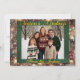 This design features a placeholder for your photo trimmed with a forest green frame on a sparkling ornament background. The back has room for your holiday's message. To change details, click «Personalize». To move the text or change the text size, font, or colour click «Click to customize further». You can also remove the Zazzle logo on the back of the card by checking the box at the bottom of editing options.