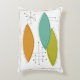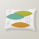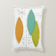 This whimsy mid century modern accent pillow features colours popular in the mid 20th century - turquoise blue, orange and avacado green surfboard shapes. Black lines and a starburst finishes this design. This will make a colourful addition to your retro or modern furniture.