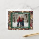 This design features a placeholder for your photo trimmed with a forest green frame on a sparkling ornament background. The back has room for your holiday's message. To change details, click «Personalize». To move the text or change the text size, font, or colour click «Click to customize further». You can also remove the Zazzle logo on the back of the card by checking the box at the bottom of editing options.
