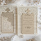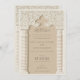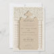 This stunning wedding invitation draws inspiration from the rich tradition of Islamic architecture, showcasing a palatial arch design, elegantly flanked by chevron-patterned columns in a nuanced palette of cream, taupe, and ecru. The intricate lace-like detailing atop the arch, rendered in shades of sand and ivory, adds a layer of sophistication, invoking the timeless beauty of intricate plasterwork found in historic mosques. This invitation is the epitome of elegance and heritage, extending a gracious invitation to your guests with its blend of cultural artistry and modern design elements, setting the stage for a wedding that celebrates love and tradition.