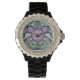Monogrammed watch with art deco ornamental pattern in pastel purple and green.
