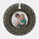 Ornate and elegant gold and black Christmas photo ornament to personalize with a favourite photograph and text on the front.