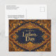 Ornate Blue Gold Scrollwork Happy Labour Day Holiday Postcard