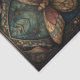A haunting image of a beautiful butterfly with ornate scrollwork all around and a gorgeous landscape backdrop.