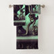 Ornate Cauldron with Green Crystal Ball and Orbs Bath Towel Set