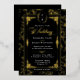 Elevate your stationery suite with this Regency-inspired wedding invitation. This design features a striking black background contrasted by an ornate gold foil floral border and a classic Victorian monogram crest. It is the perfect choice for couples hosting a formal black-tie affair or a vintage-themed celebration in a grand chapel.