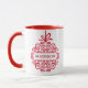 Celebrate the holiday season with this elegant, personalized Christmas mug featuring an ornate doodle ornament design in festive red. The intricate ornament surrounds a customizable name, making it a perfect gift for loved ones or a special seasonal treat for yourself. The mug's red interior beautifully complements the ornament design, adding an extra touch of holiday cheer. Ideal for coffee, tea, or hot cocoa, this mug brings a personalized touch to every sip during the holidays. Great for Christmas morning or festive gatherings, it’s a charming keepsake that can be enjoyed year after year.