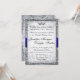 Ornate Fairytale Storybook Faire-part de mariage Grey. Doté de couleurs pourcentages royales de bleu royal et d'argent et de perles. Ce faire-part de mariage de conte de fées chic et sophistiqué conviendra à tous les mariages à thème ou aux mariages de cravates noires. En apportant une touche d'élégance et de charme, vous enverrez des salutations à vos invités dans le plus pur style avec ce faire-part de mariage de conte de fées. A des perles et des diamants sur les fleuris qui sont dans les coins. Une couronne royale trône au centre du haut, ornée d'or et de bijoux. Une illustration en filigrane se trouve au-dessus d'un arrière - plan vintage et une bordure ornée tient le milieu texturé en papier orné. Les produits correspondants se trouvent dans la section mariage de mon magasin.