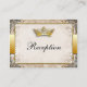 Ornate Fairytale Storybook Wedding Reception Card. Featuring regal royalty colours of gold and silver and pearlescents. This classy and sophisticated fairytale wedding reception card is great for any theme wedding or black tie wedding. Bringing a touch of elegance and charm you will send greetings to your guests in utter style. Has faux pearls and diamonds on the flourishes that are in the corners. A royal crown sits in the top centre adorned with gold and jewels. A filigree illustration sits atop a vintage background and an ornate border holds the ornate paper textured middle. Matching products can be found in the wedding section of my store.