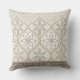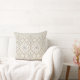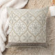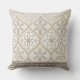 An ornate, symmetrical seamless pattern throw pillow featuring interconnected circles, diamonds, and floral motifs in warm beige and brown tones on a light background. The design combines structured geometric borders with stylized leaves and flowers, blending natural inspiration with architectural precision. With influences from Moroccan, Victorian, and Mediterranean styles, this pattern evokes timeless elegance and detailed craftsmanship. Ideal for home décor lovers, tile enthusiasts, and those drawn to heritage-inspired designs. Perfect for artisan gifts, cultural-themed projects, or classic decorative accents.