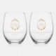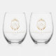 Ornate Gold Crest Monogram Wedding Stemless Wine Glass
