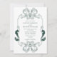 Ornate Green Floral Line Art Monogram Wedding Invitation