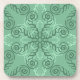 Set of 6 coasters with a detailed and intricate pattern of leaves and swirls in green and white. Ornate symmetrical design in cool soothing greens.