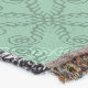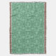 Throw blanket with a detailed and intricate pattern of leaves and swirls in green and white.