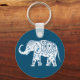 Cute keychain with decorative henna tattoo style elephant on dark blue background. Option to customize background colour.