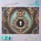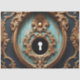 Unlock the elegance of forgotten palaces with this lavish decoupage design featuring an intricately carved oval keyhole surrounded by golden baroque scrollwork and distressed teal wallpaper. Rich in detail and fantasy, this piece blends aristocratic charm with the mystery of hidden secrets.