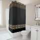 Elegant and visually rich bathroom decor shower curtains for Goth / Steampunk / Victorian home looks and for people who love the theatre, drama, masquerade, cosplay, gothic, goth, Victorian and steampunk stuff. Wonderful rich luxurious design with black background and ornate embellishments from my own design. Very nifty - makes a great gift. CricketDiane Designer / Artist 2016.